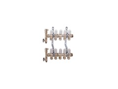 5-branch Delux Brass Manifold Set for Radiant Heating Applications. All brass construction. Nickel plated finish. 1/2" PE-RT/ PEX Adapters included.